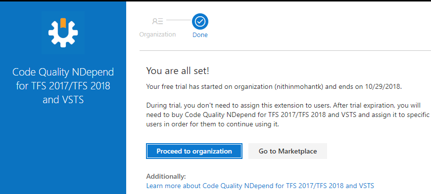 Installation of NDepend Extension for VSTS/Azure DevOps :