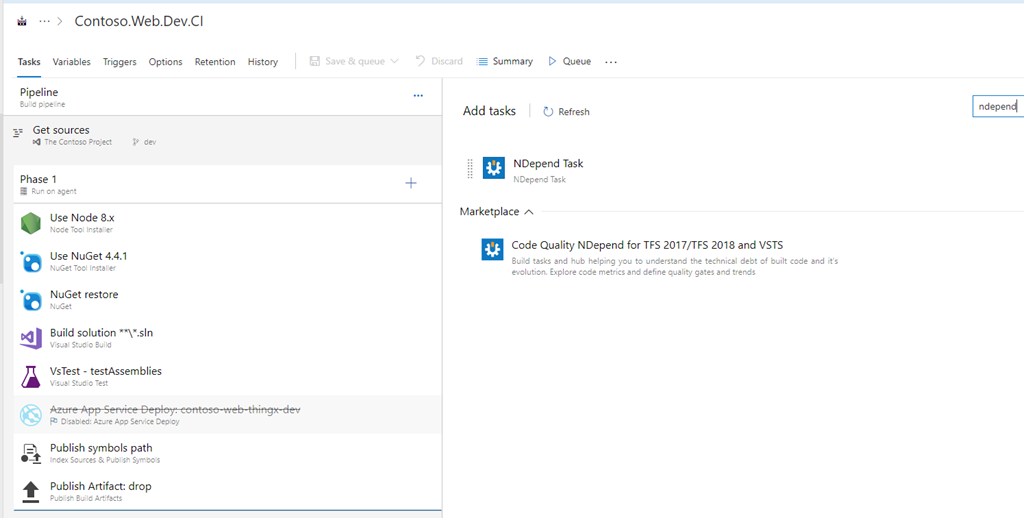 For the interest of this article I will cover the use of VSTS Package Extension and using NDepend Build Task in VSTS Build Pipeline.