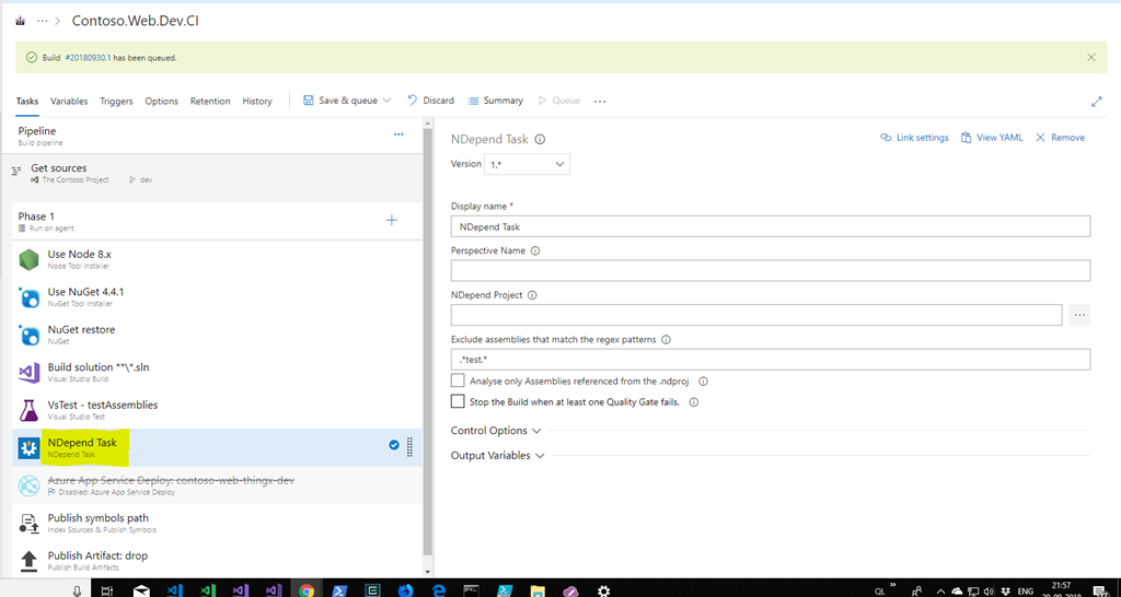 For the interest of this article I will cover the use of VSTS Package Extension and using NDepend Build Task in VSTS Build Pipeline.