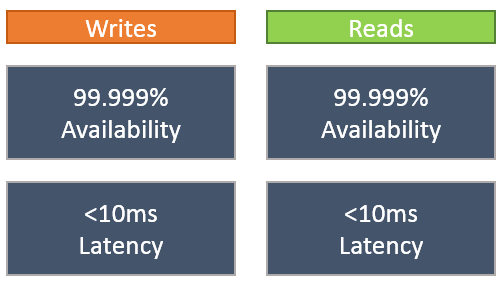With multi-master, Azure Cosmos DB delivers a single digit millisecond write latency at the 99th percentile anywhere in the world, and now offers 99.999 percent write availability (in addition to 99.999 percent read availability) backed by the industry-leading SLAs.